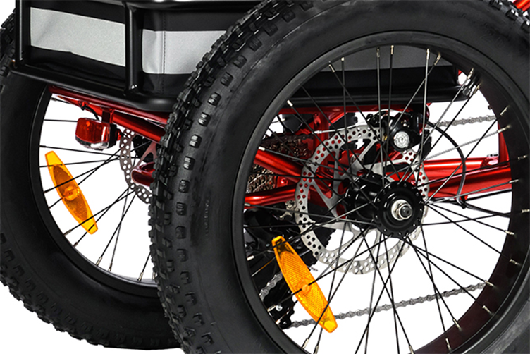 The fat tire electric trike are equipped with 180mm dual disc brakes for all wheels, which prevents rollover effectively. When you brake, the brake disc can be sensitively held tightly according to your needs.