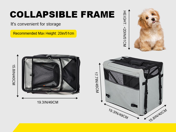 Collapsible frame enables easy storage, with a max recommended height of 20in/51cm. Compact 19.3in/49cm design optimizes portability and space efficiency for versatile use.